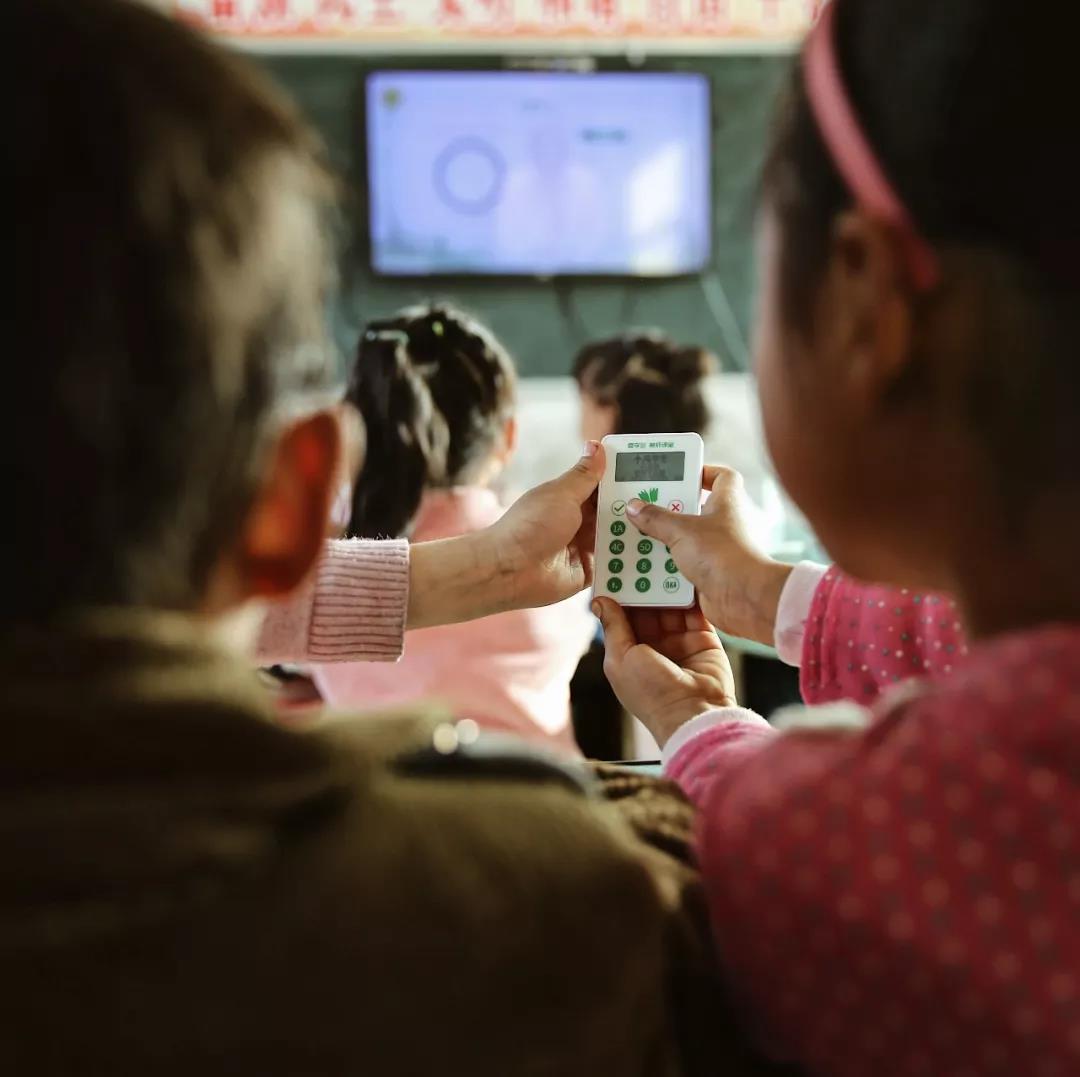 中天互动技术通过答题器助力爱学习双师课堂走进山村,解决了山区课堂互动不足的问题,让试点小学的教学更具活力。