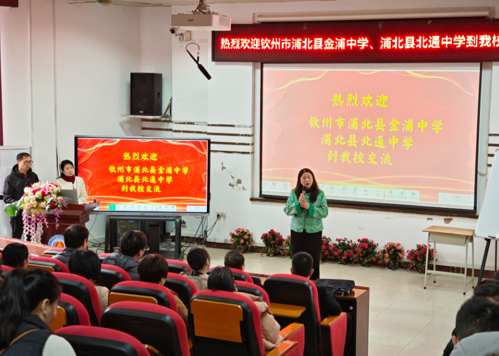11 月 21 日,浦北县金浦中学张均冰副校长、北通中学校长温武带队,两所学校共计 97 名领导及学科教师赴桂林十八中开展校际交流,桂林十八中的谭红副校长,赵娜主任,王丽媛副主任进行了接待工作。活动通过校园参观、领导致辞、示范课观摩、数字化终端介绍、数字化实践交流等环节有序推进。作为深耕基础教育、数字化教学融合成效显著的优质示范校,桂林十八中以中天易教课堂即时反馈系统实操实践为核心,为两校搭建了经验互鉴平台,共同探讨数字化工具与课堂教学的深度融合。