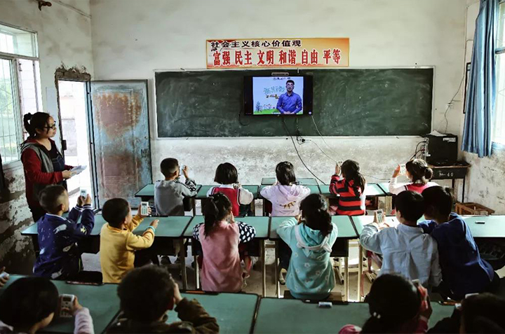 中天互动技术通过答题器助力爱学习双师课堂走进山村,解决了山区课堂互动不足的问题,让试点小学的教学更具活力。