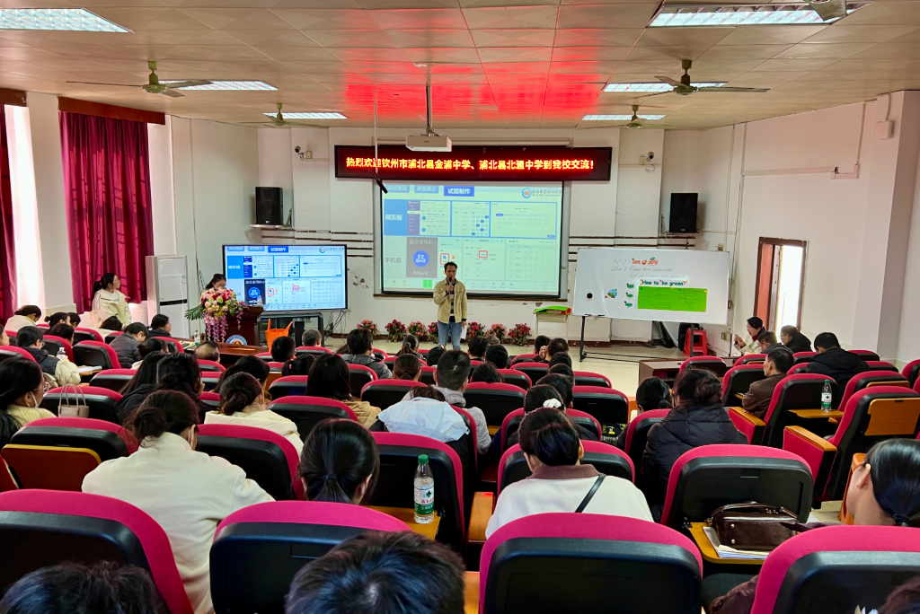 11 月 21 日,浦北县金浦中学张均冰副校长、北通中学校长温武带队,两所学校共计 97 名领导及学科教师赴桂林十八中开展校际交流,桂林十八中的谭红副校长,赵娜主任,王丽媛副主任进行了接待工作。活动通过校园参观、领导致辞、示范课观摩、数字化终端介绍、数字化实践交流等环节有序推进。作为深耕基础教育、数字化教学融合成效显著的优质示范校,桂林十八中以中天易教课堂即时反馈系统实操实践为核心,为两校搭建了经验互鉴平台,共同探讨数字化工具与课堂教学的深度融合。