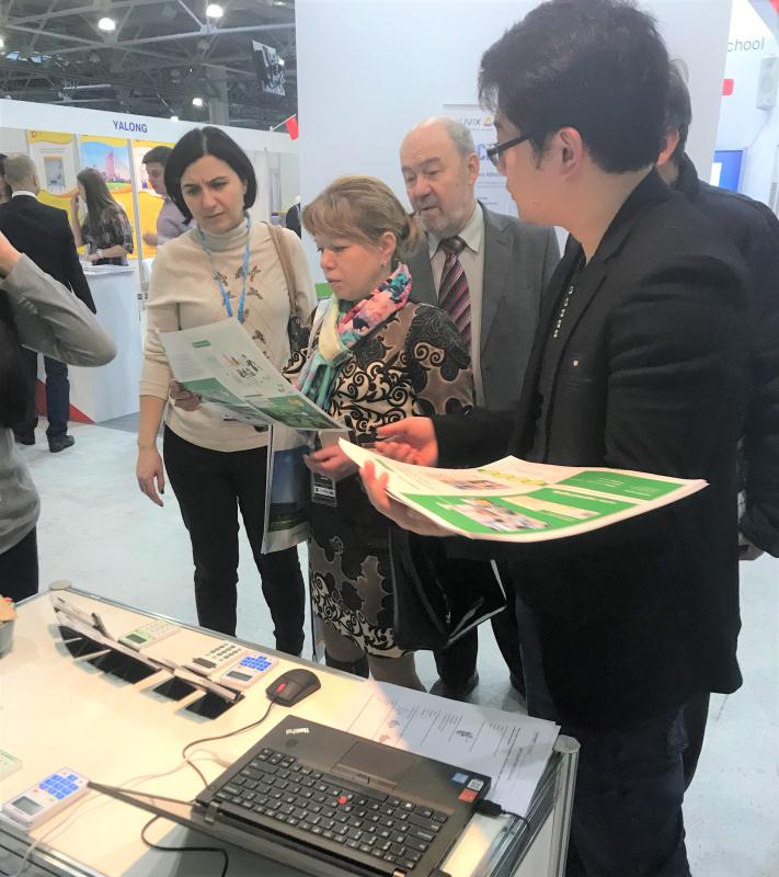 Worlddidac Russia展览会(http://www.worlddidac-russia.com)由俄罗斯国家教育部发起,世界教具联合会(Worlddidac,简称“世教联”)作为其支持单位,是世教联在东欧国家发展的首个教育技术装备专业展。鉴于世教联在全球教育装备领域的权威性,该展会将成为以俄罗斯及周边国家规模最大、覆盖面积最广、专业性最强的教育装备及技术展。中天团队不仅借此盛会展示了课堂互动、课堂测验的应用方案,还向合作了多年但第一次见面的俄罗斯老客户,推荐了目前在中国K12公私立学校已经日趋成熟的,集考勤、答题、消费、通讯为一体的智能学生答题卡方案,在课外培训机构异常火爆的