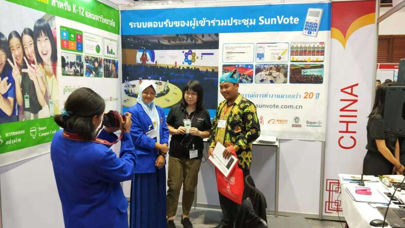这是集合了欧、美、澳、中、日、韩等20多国上百家教育装备专业产品方案提供商出展的国际性展览盛会,中天电子SunVote品牌自主研发互动反馈技术之电子答题器、校园一卡通等产品方案首次亮相本届展会。