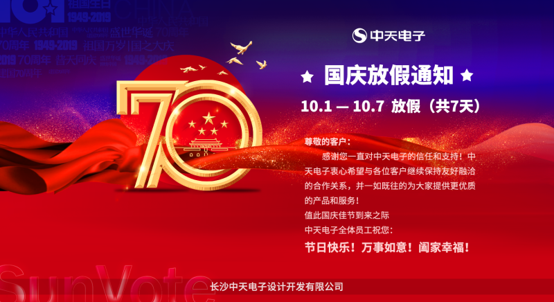2019年10月1日 — 2019年10月7日(共7天)放假休息