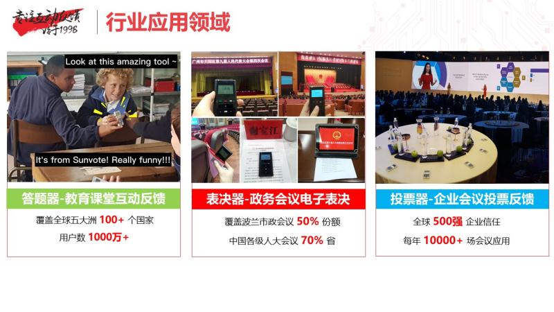 2011年,源于中国教育信息化建设1.0政策的支持,SunVote学生答题器借助教育项目契机批量进入了各类K12公校的实验班;同时,国内部分高等院校,特别是有海外留学经历的老师也非常乐意在他们的课堂上使用互动反馈系统。
