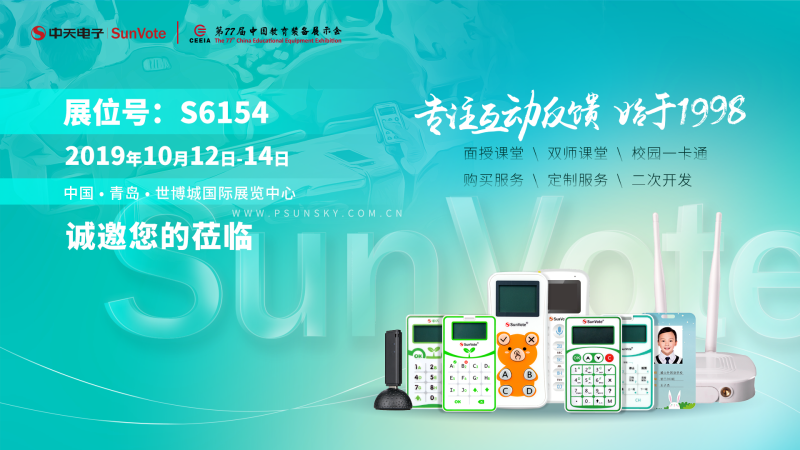 金九银十,行业俱兴。山东省教育厅和青岛人民政府承办的“第77届中国教育装备展示会”,将于2019年10月12日至14日在山东省青岛市举行,21年的老牌厂商“中天电子”携课堂互动反馈系统应邀参展。